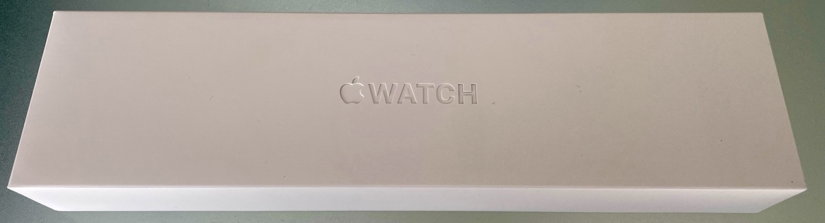 Apple Watchとバンドの箱が下にある。同梱物がはっきりとわかるシンプルな外装。