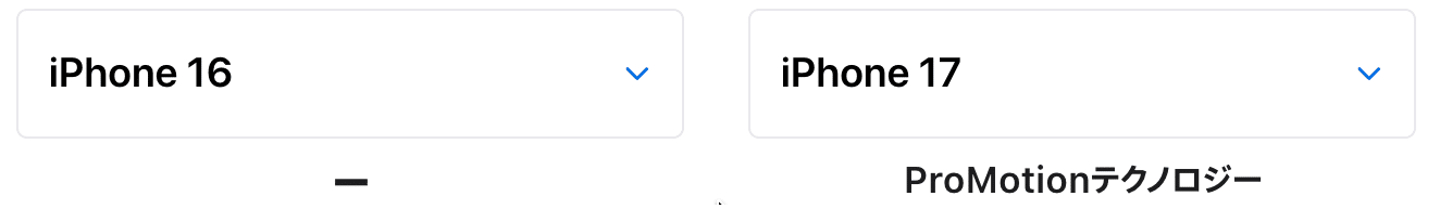 これまでProモデルしか搭載されなかった「ProMotionテクノロジー」がiPhone 17で初めてスタンダードモデルに採用されました。